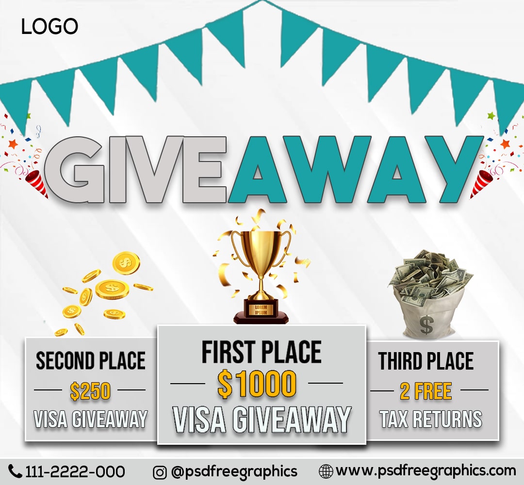 If you download this Giveaway Flyer PSD, you will get PSD files in 1080×1080 Size, 300 dpi, and RGB Format. Just download the PSD file and edit text or any business promotion. All main elements are editable.