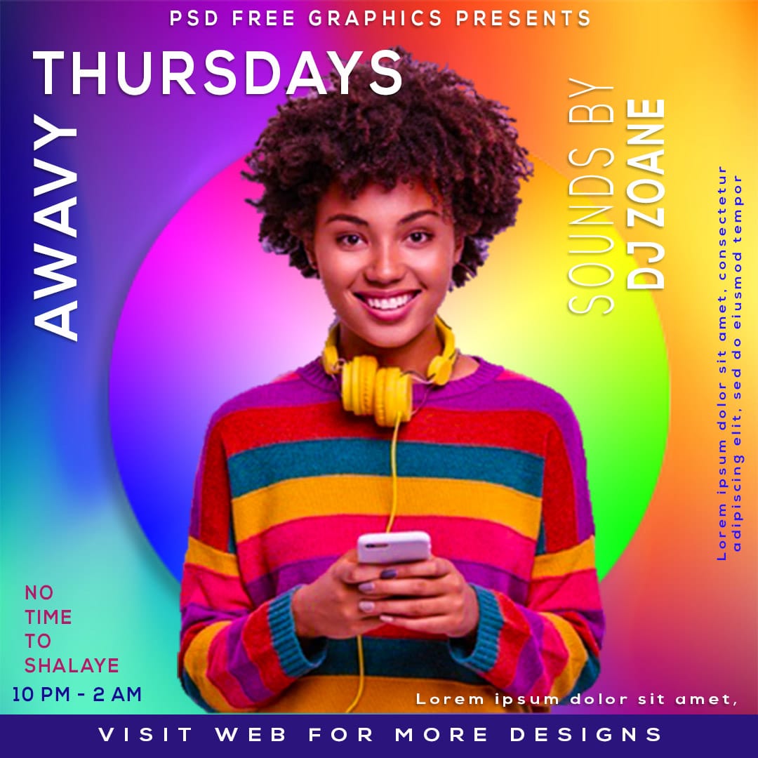 Download Free Party Flyer. This eye-catching Instagram Flyer that’s perfect for promoting your parties, and events. This Flyer Template is designed to promote your Song parties or any events. This Flyer Design PSD is designed in Adobe Photoshop. This Download contains a 1080×1080 size, 300 dpi, print-ready, CMYK, and, PSD file. All layers are editable and moveable.